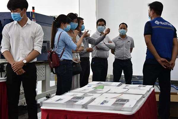 Zhong Saier, deputy general manager of Haitian Vietnam Ltd, Ho Chi Minh regional manager Yang Yingjun and business partners of the Vietnamese plastics industry at the official opening ceremony.